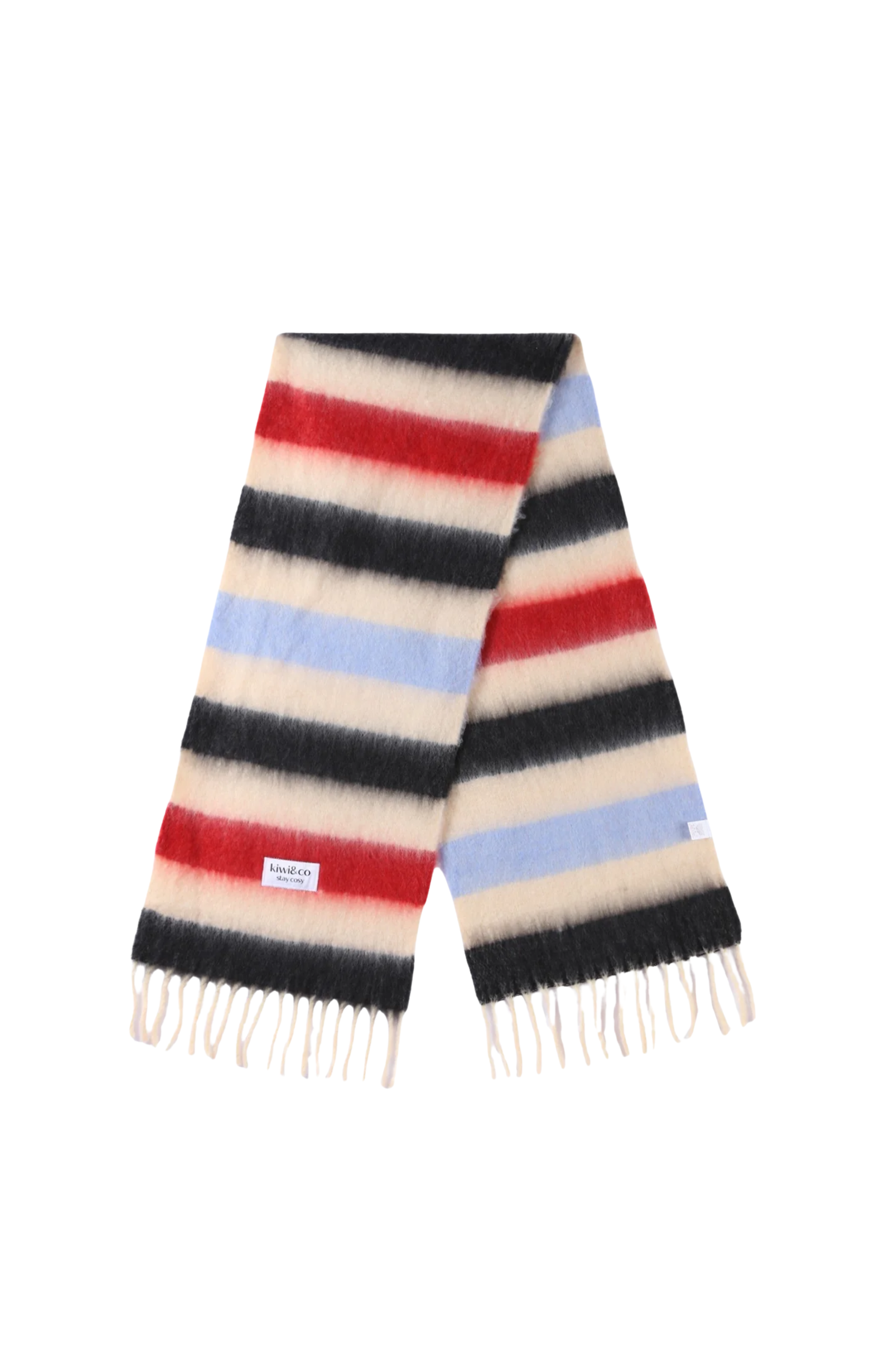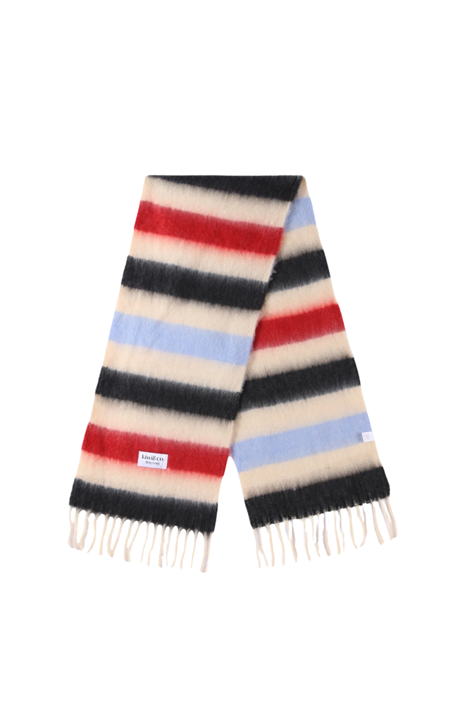 A playful twist on a classic stripe, the Sweetmint Scarf is designed to add a soft pop of colour to any cold-weather look. Woven in dreamy shades of cream, red, black, and powder blue, it’s the perfect balance of bold and wearable - a statement piece that still feels effortlessly easy.