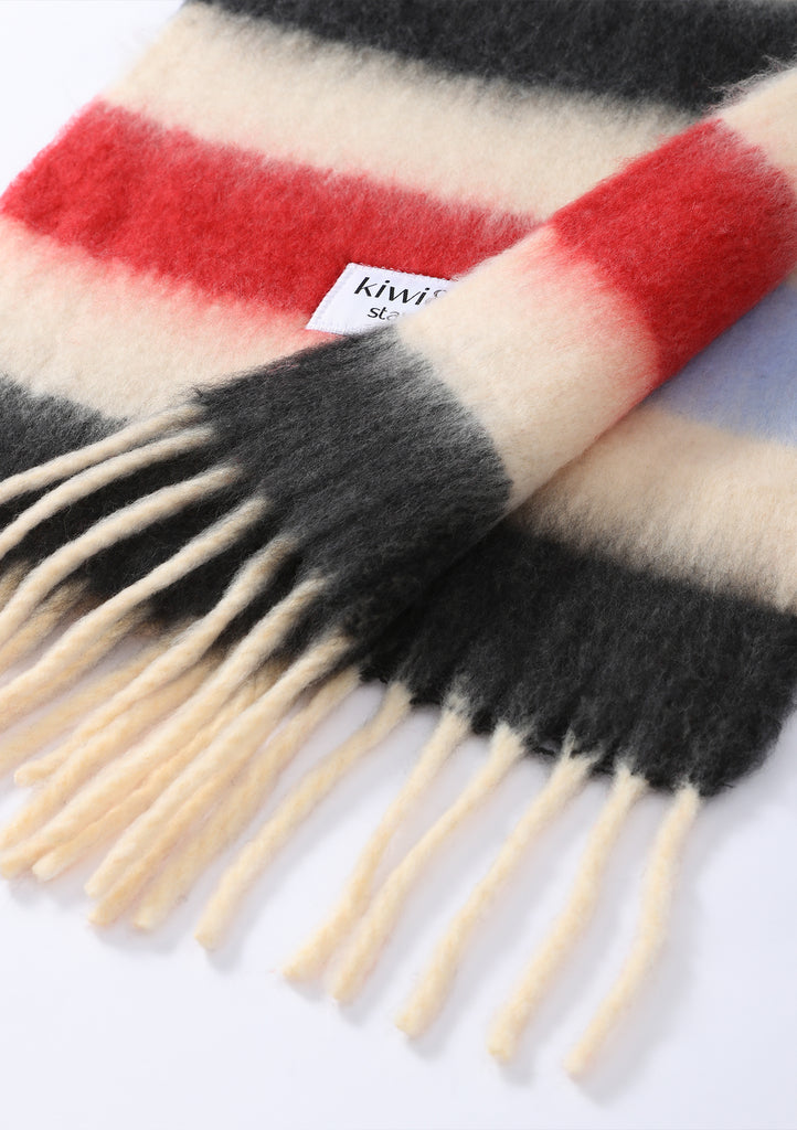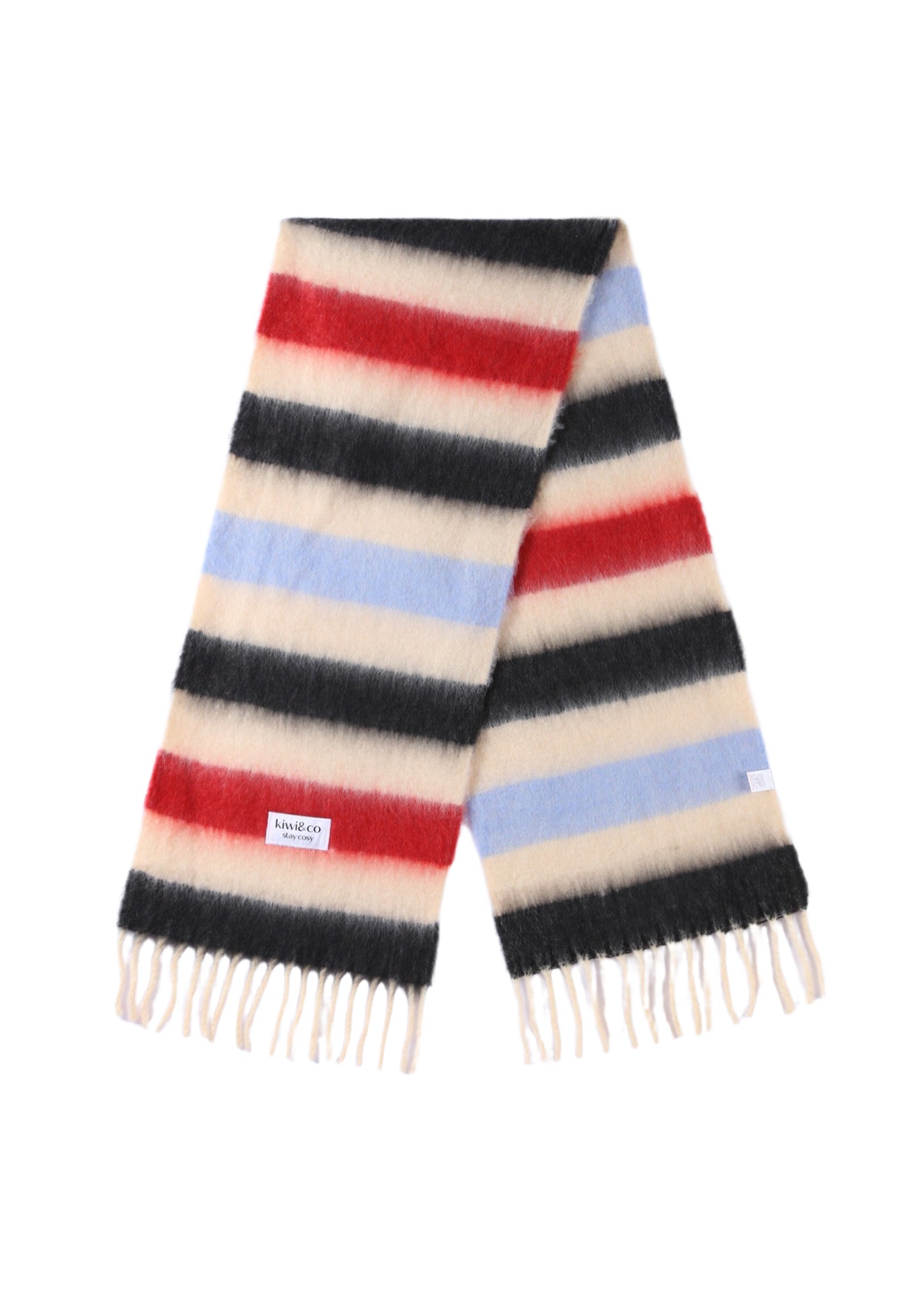 A playful twist on a classic stripe, the Sweetmint Scarf is designed to add a soft pop of colour to any cold-weather look. Woven in dreamy shades of cream, red, black, and powder blue, it’s the perfect balance of bold and wearable - a statement piece that still feels effortlessly easy.